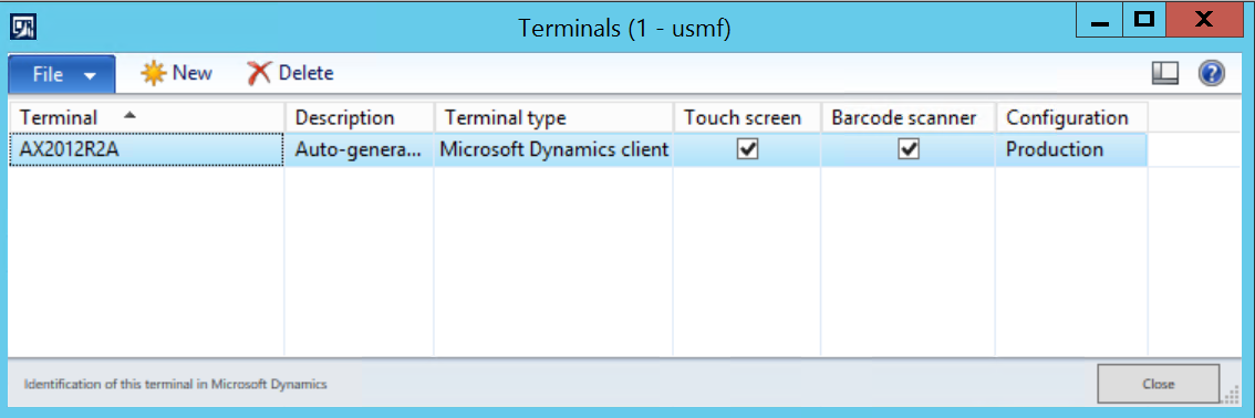 This creates the record in the terminals table with the description Auto-generated. The configuration can be changed at any time, but require a restart of the job registrations form.