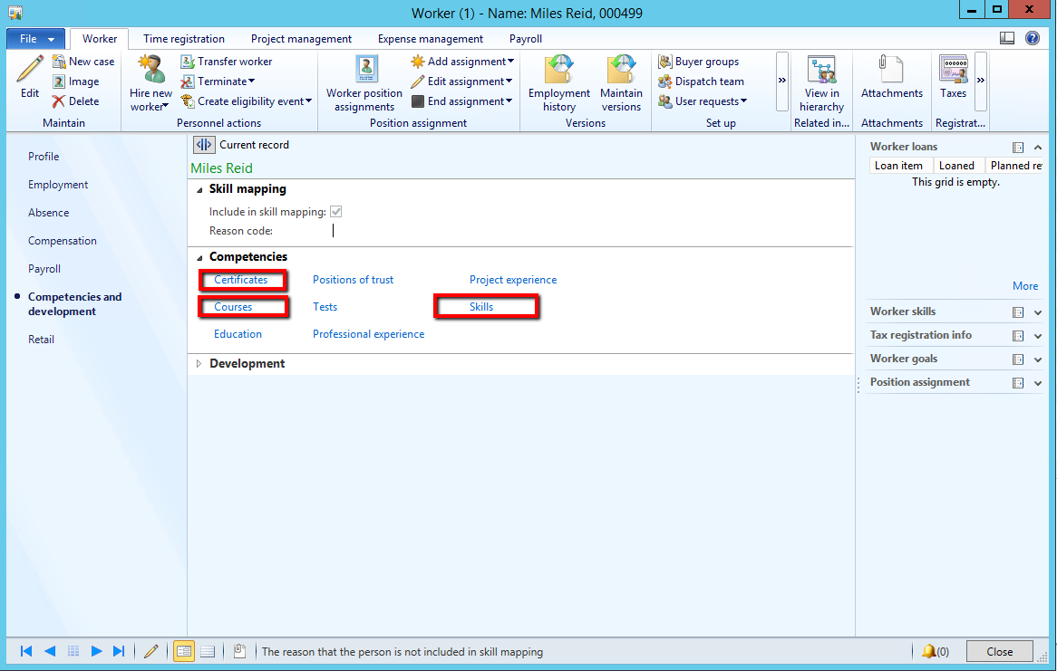 To add these to a person, go to the worker card > Competencies and development > Competencies