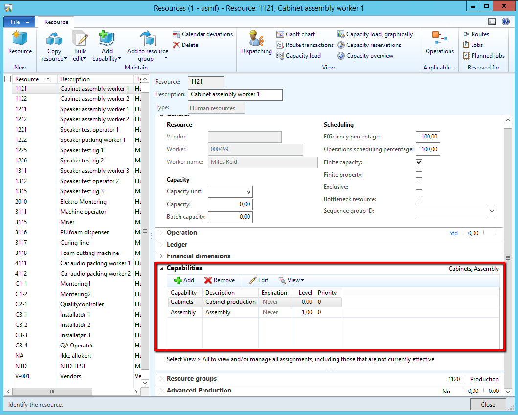 Keep in mind that production planning always select the resource first by alpha numeric order. Priority can be used to break this and select a resource that is most suited. Example of use can be where two human resources can perform two tasks, but one is better than the other at one capability and the second is better at another capability. This really elevate resource planning within a resource group to find the best suited resource for the job.