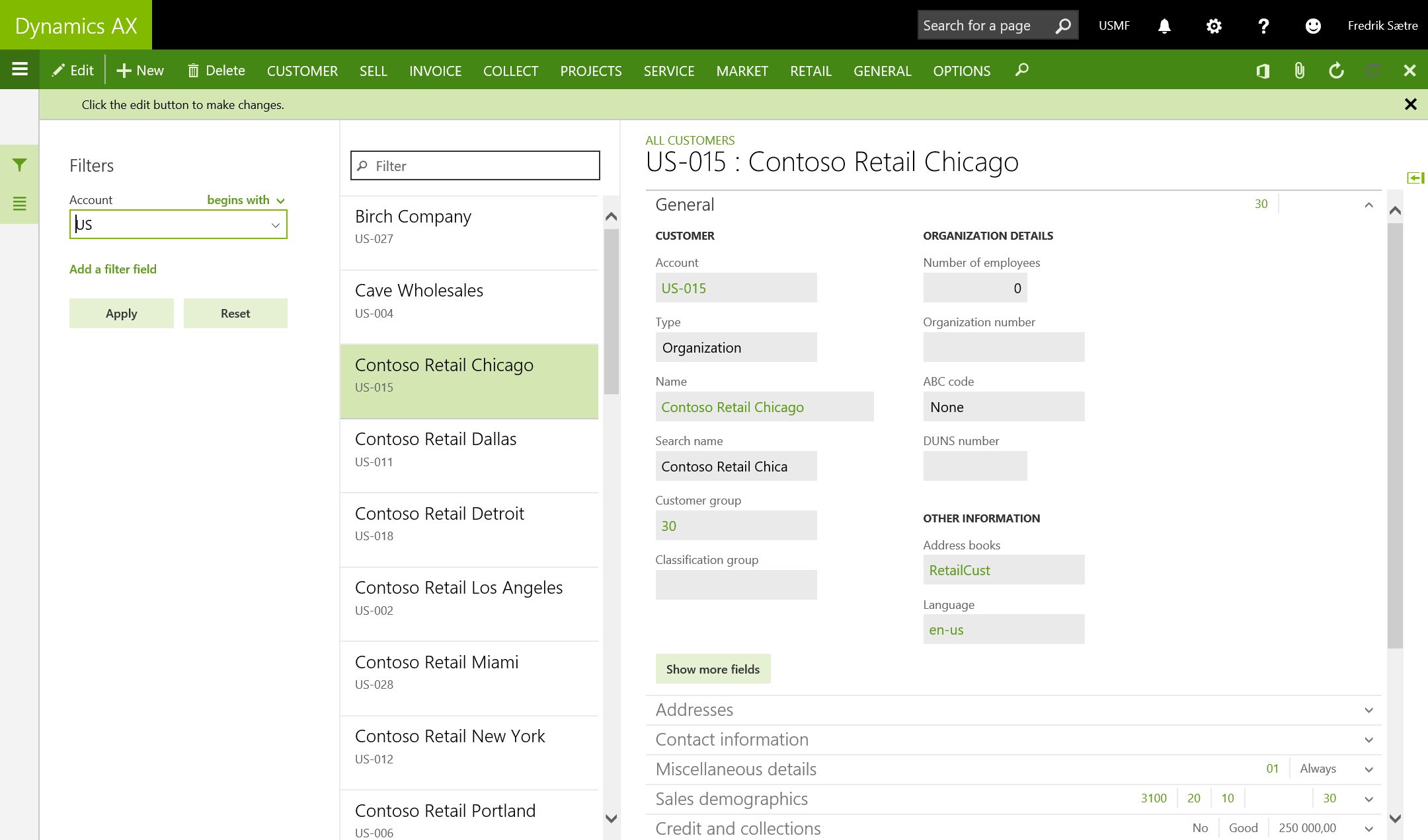 This is an example of a query for Account numbers starting with US in the “All customers” (CustTableListPage) form: