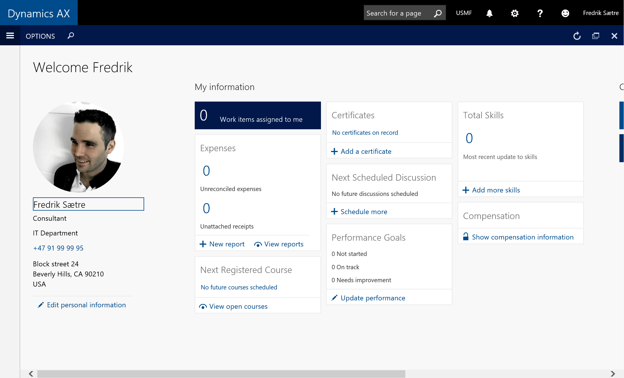 - Clicking the ‘Dynamics AX’ button in the top left corner