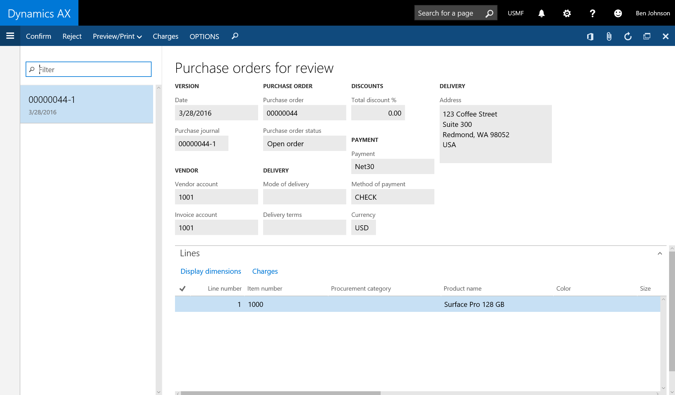 While waiting for feedback the status of the purchase order will be “In external review” and when confirmed it will get the status “Confirmed”. Confirmation also is automatically posted.