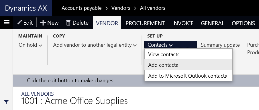 I presume you know how to create a vendor, so I won’t show you that. It is however important that the user is connected to the right vendors (Yes, plural!) as this is how the records shown will be limited.