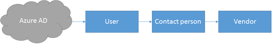 The person using the Vendor portal has a personal relationship with the solution and is identified as a contact in the Global adresse book.