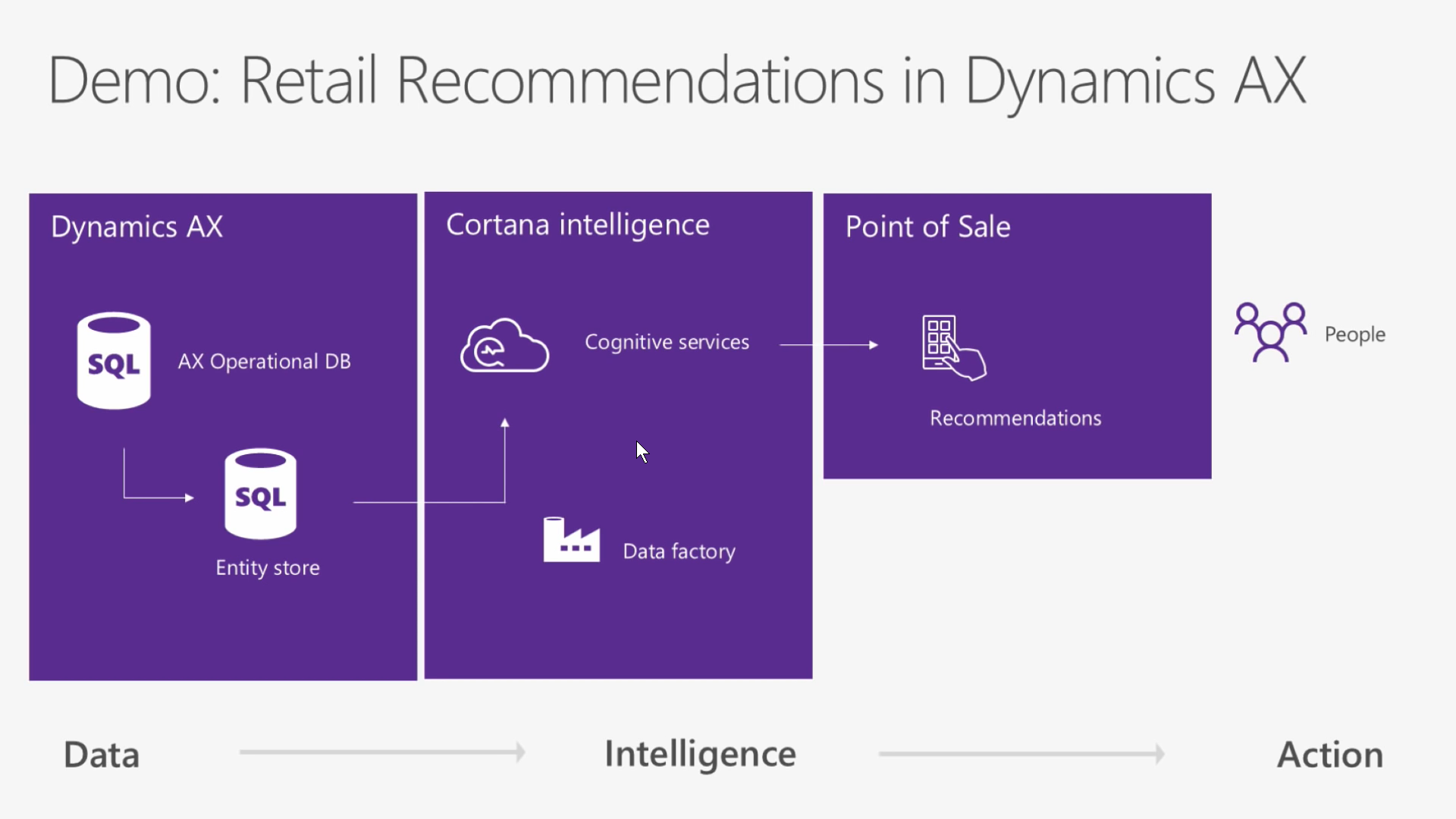 The keynote from Satya Nadella didn’t mention AX, but it is clear that AI is a major focus area and will be more and more introduced as a part of the Dynamics processes and work as decision accelerators. AX will use Cortana analytics for Product suggestions in Retail and Product forecasting at first, but I think we’ll soon see a lot more areas supported by this.