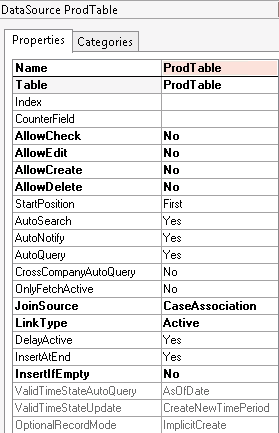 If you copy from the Sales order form you might want to change the “MenuItemName” parameter to a generic or production (in this case) to get the right category.